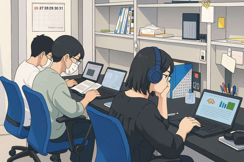 本日は学生たちが実験を教えあい、次の実験の構想を練り、学会発表の準備をしていました。スタッフも電気泳動実験を医学類学生に教えようとしましたが、老眼👓のためチップの先が見えませんでした…若い人たちから元気と活力を分けてもらいながら、研究を進めたいものです。