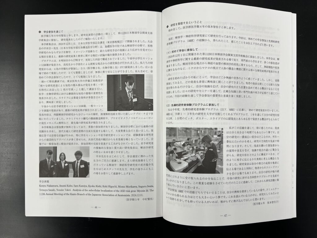 一般社団法人筑波大学医学同窓会桐医会会報誌98号(2025年10月1日刊行)に、解剖学・神経科学研究室に参加している医学類学生の研究室演習の紹介記事が掲載されました。