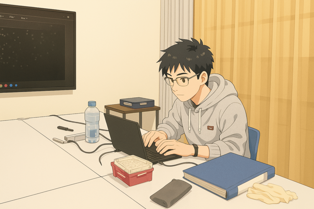 10月25日、26日の両日、朝8時から夕方5時まで停電となり、研究室での作業ができない状況に。スタッフMが停電対応をしました。本日は、終日小雨が舞う天気でした。灯りのない室内で書籍を読んでいると機材のノイズの少なさを感じます。窓から入る風は時に冷気を含んで、心の罅を撫でていきます。また陽光の如き才能が研究室に来てくださるのを楽しみにしています。