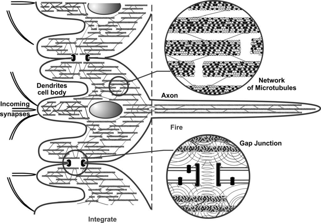 ペンローズ(Sir Roger Penrose、1931年8月8日 – , 2020年ノーベル物理学賞受賞)とハメロフが提唱した微小管と意識の関係、すなわち Orchestrated Objective Reduction(Orch-OR)理論は、2025年現在もなお神経科学および物理学の周縁で議論が続いている仮説です。この理論は、意識を単なるニューロン間のシナプス活動の総和としてではなく、ニューロン内部の微小管における量子過程、とりわけ量子重ね合わせとその客観的収縮(Objective Reduction, OR)に基づく現象として捉えようとする点に特徴があります。Penrose は、量子力学における波動関数収縮を観測者依存の確率事象ではなく、時空の幾何学、すなわち量子重力に起因する客観的かつ非計算論的な過程であると考え、その瞬間こそが主観的意識体験の最小単位であると主張しました。Hameroff は、この物理過程が生じる「場」として、神経細胞内に普遍的に存在する微小管を位置づけました。