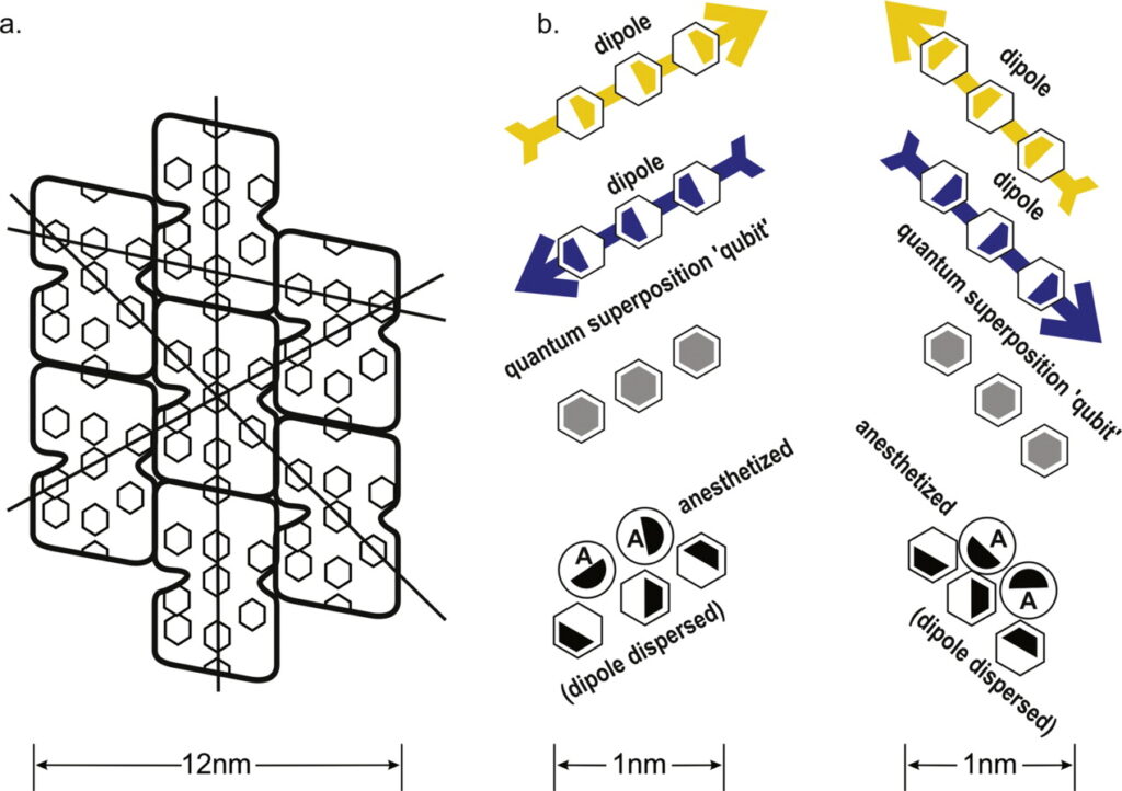 近年の実験的研究で注目されているのは、麻酔と微小管の関係です。全身麻酔が可逆的に意識を消失させるという事実は、意識理論にとって重要な検証対象です。Orch-OR 理論では、麻酔薬が微小管レベルの過程を阻害することによって意識が失われると予測しています。実際、2020年代に入ってから、微小管安定化薬が吸入麻酔薬による意識消失や回復の動態に影響を与えることを示す動物実験が報告されており、麻酔薬が微小管機能に何らかの作用を及ぼす可能性は一定程度支持されつつあります。ただし、これらの結果は、微小管の古典的な構造的役割や細胞内輸送機能の変化としても説明可能であり、量子コヒーレンスや OR の実在を直接的に裏づけるものではありません。