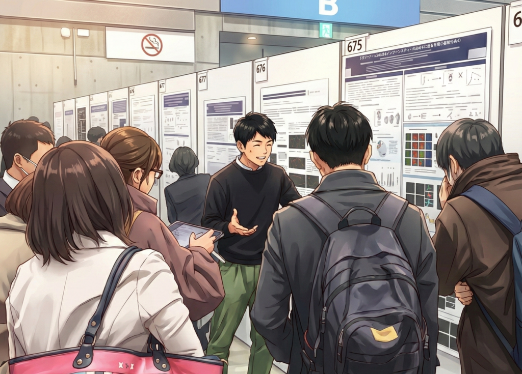 第48回日本分子生物学会年会(MBSJ2025)が、2025年12月3日(水)~5日(金)にパシフィコ横浜で開催されました。テーマは「この指とまれ”Let’s gather here, in Yokohama!”」でした。医療科学類3年生がポスター発表しました!