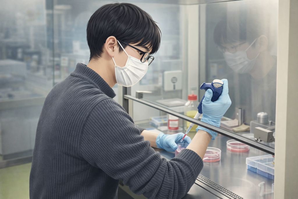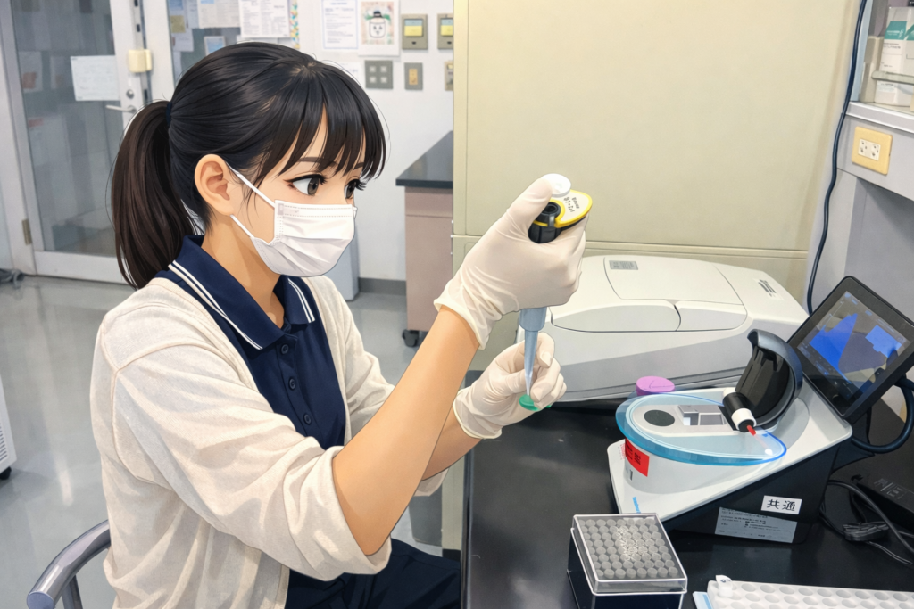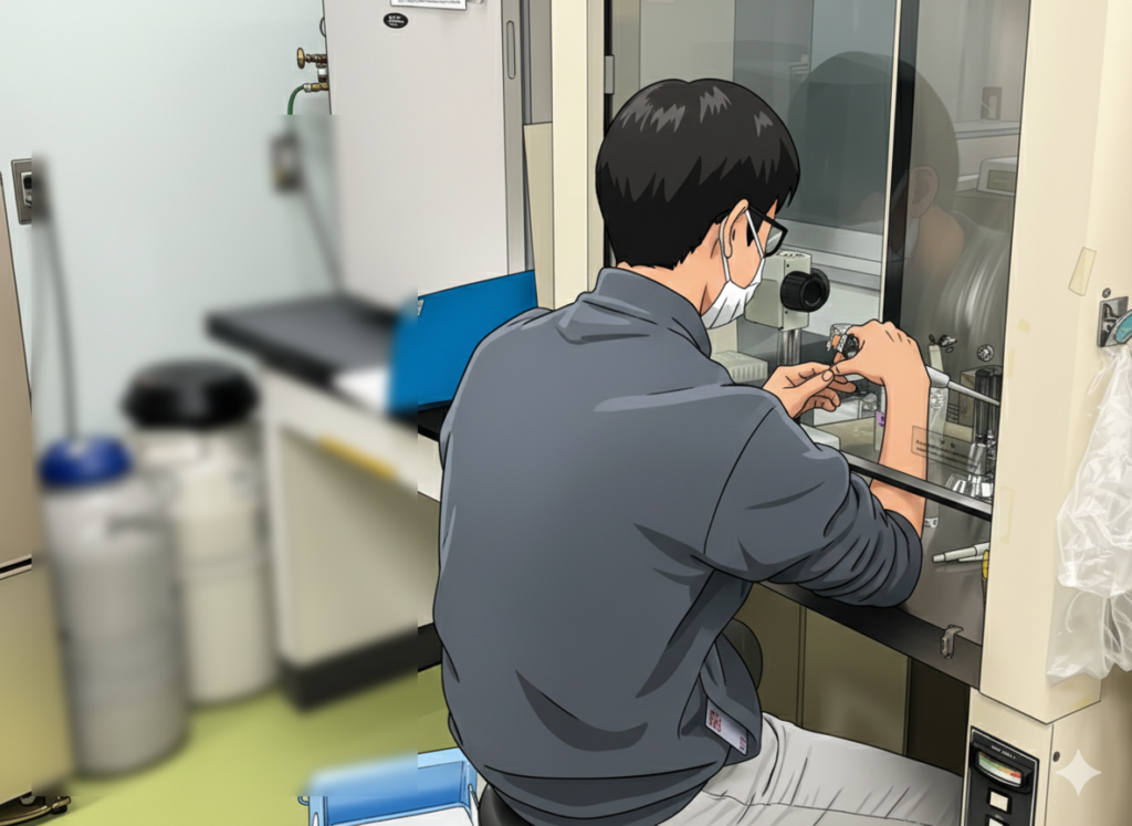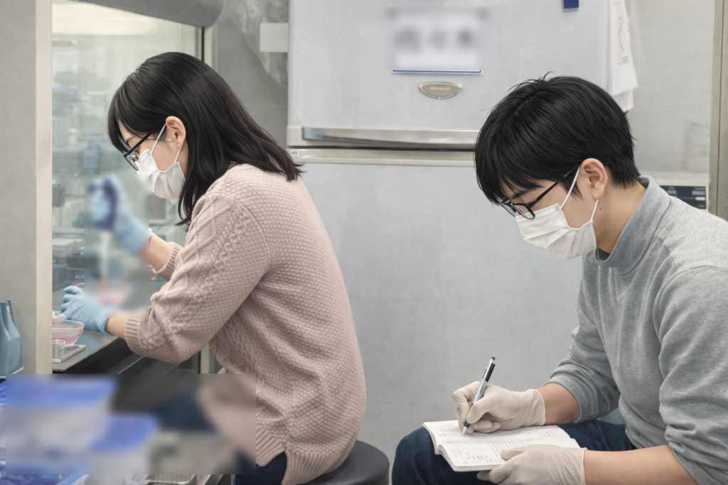 前期試験2日目です。スタッフにはそれぞれタスクが割り振られていますが、研究室では、医学類学生と大学院生が実験を頑張りました。新医学専攻の学生の方は疾風のように、顕微鏡観察に出かけていきました。M1の学生の方は、実験室での初めての実験に取り組みました。少しずつ実験に慣れましょう!