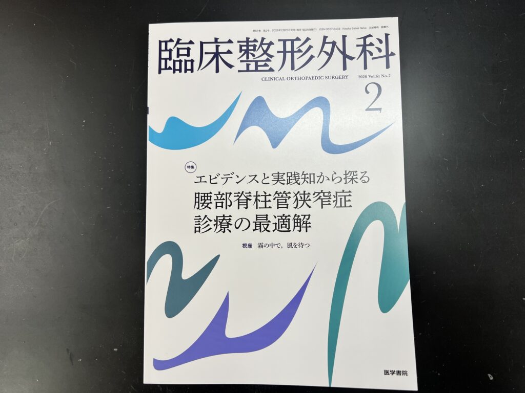 医学書院様の「臨床整形外科」Vol.61 No.2 2026年 02月号(特集 エビデンスと実践知から探る 腰部脊柱管狭窄症診療の最適解)にスタッフの書評が掲載されました。ありがとうございました!本日は朝から学生たちと研究の打ち合わせをしました。昨日、某試験を終えた医学類1年生も駆けつけてくれました。少しずつ知識を増やして、研究に繋げていきましょう。