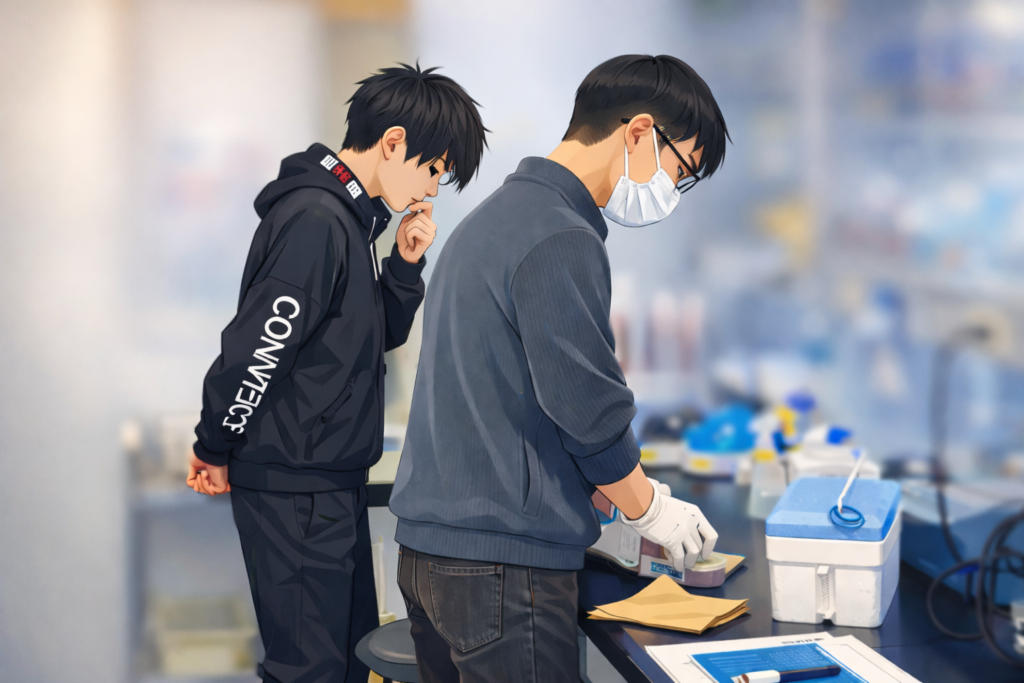 他大学の学生の方が、研究室訪問に来てくださいました。研究に関する議論をしました。長時間にわたり、ありがとうございました。医学類M1の学生の方が、先輩たちと実験を行いました。少しずつ作業に慣れましょう。