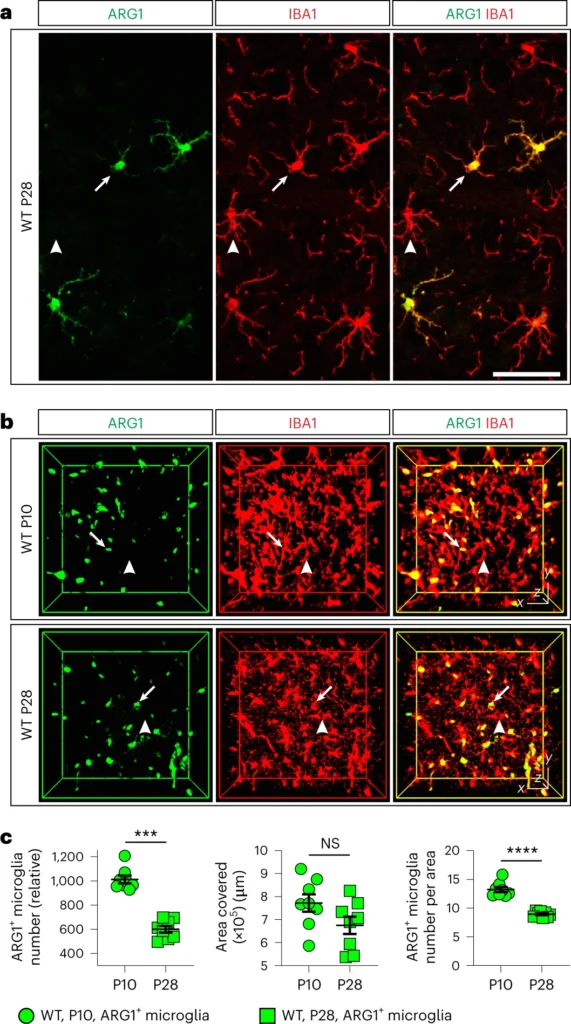 ARG1-expressing microglia show a distinct molecular signature and modulate postnatal development and function of the mouse brain (ARG1を発現するミクログリアは独特な分子シグネチャーを示し、マウス脳の出生後発達と機能を制御する)