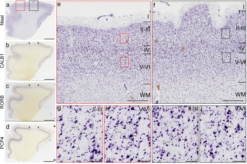 - 染色・マーカー:Nissl染色、ISH(CALB1、RORB、PCP4)
