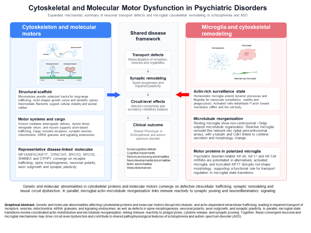 Keywords: cytoskeleton; molecular motors; schizophrenia; autism spectrum disorder; microglia