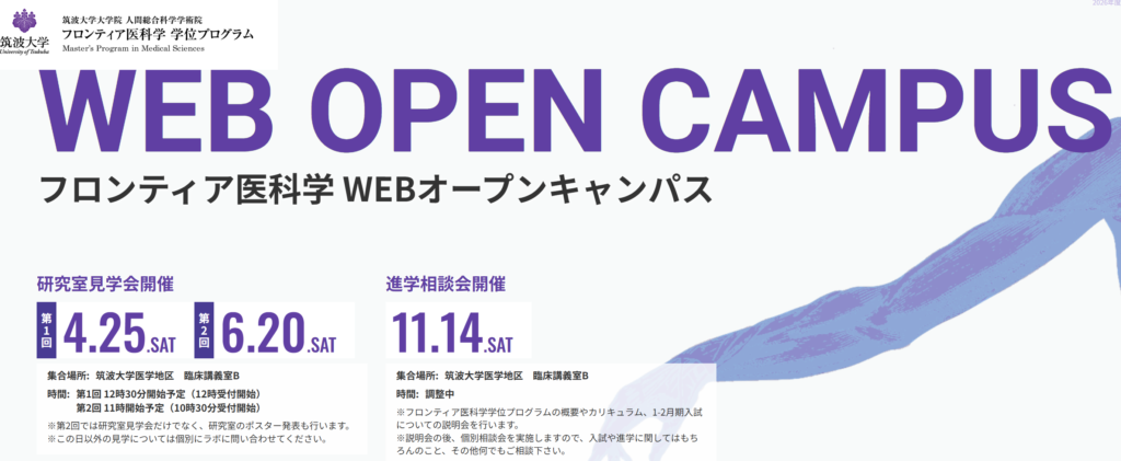 フロンティア医科学学位プログラム研究室見学会が開催されます 2026年4月9日2026年4月9日 takeilab フロンティア医科学学位プログラムの大学院説明会・研究室見学会が下記の日程で開催予定です。一緒に研究を頑張ってくださる学生の方を募集しています! 本日は、フロンティア医科学学位プログラム新入学生と医学類の学生が実験を頑張りました! FacebookXBlueskyCopy